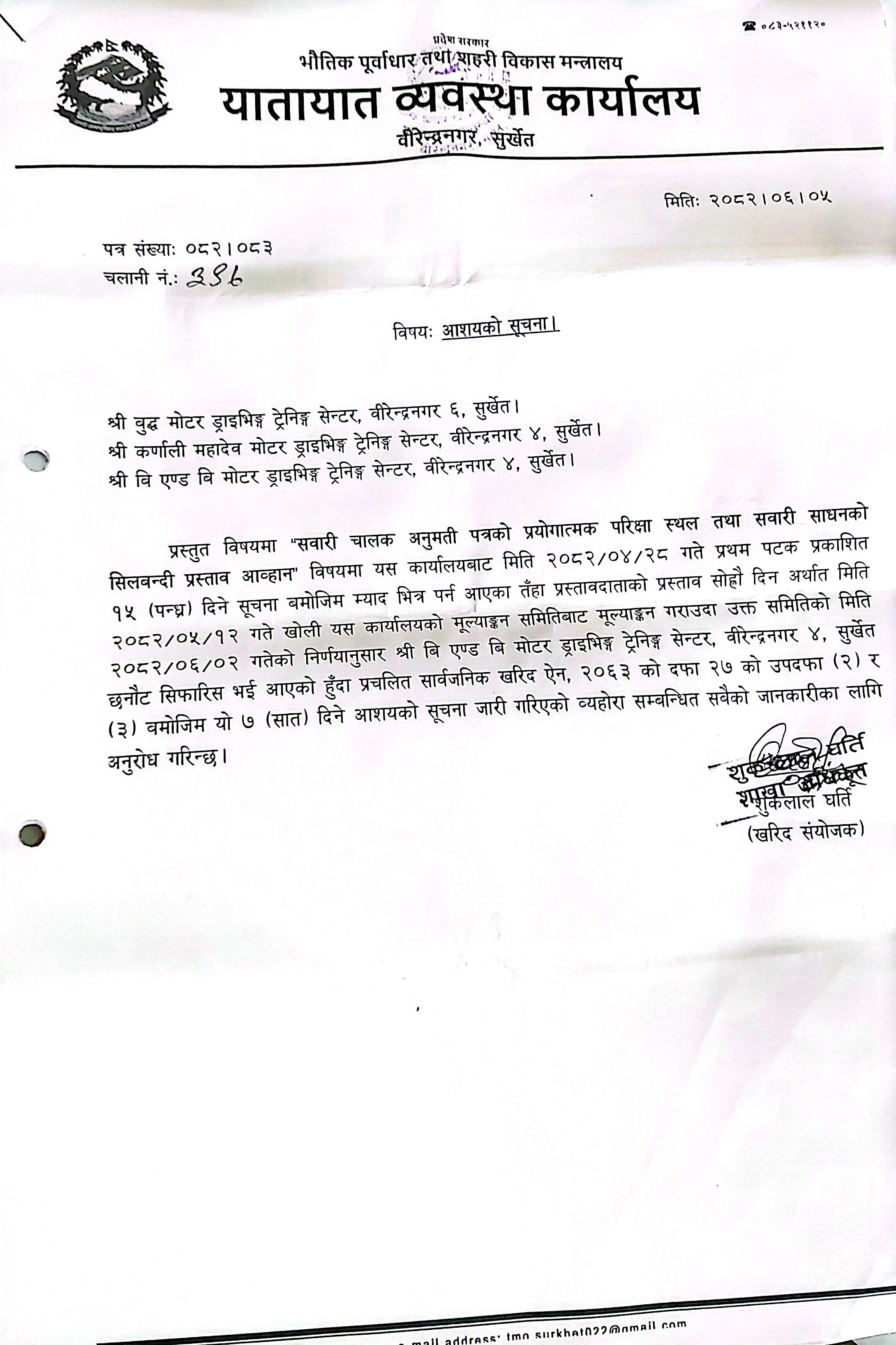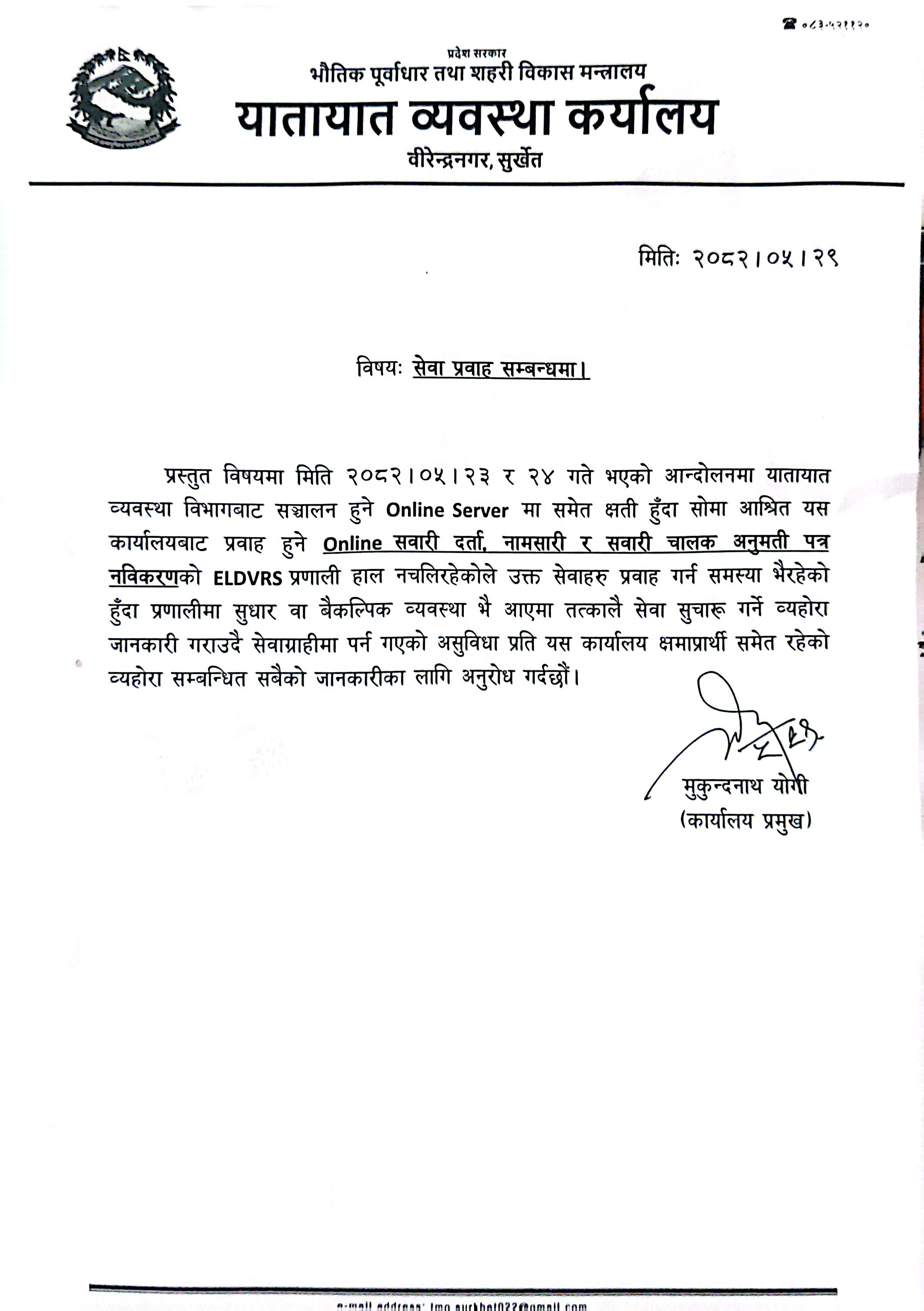 यातायात व्यवस्था कार्यालय, सुर्खेत।